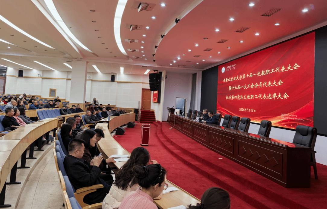 3月12日下午3:00,内蒙古农业大学机关第四分会在博学楼科技报告厅召开第十届一次教职工代表大会暨十六届一次工会全员代表大会,会议由机关第四党总支书记李立峰同志主持,分会全体教职工参会。